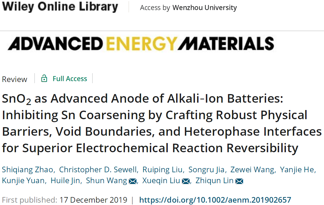 近日,国际能源顶级刊物《Advanced Energy Materials》发表了qy球友会体育qy球友会官网赵世强博士有关二氧化锡作为碱金属离子电池先进负极材料的综述性论文“SnO2 as Advanced Anode of Alkali-Ion Batteries: Inhibiting Sn Coarsening by Crafting Robust Physical Barriers, Void Boundaries, and Heterophase Interfaces for Superior Electrochemical Reaction Reversibility”(二氧化锡作为碱金属离子电池先进负极材料:构建稳健的物理屏障、孔隙边界、异质界面抑制锡粗化增强电化学反应可逆性),qy球友会官网经理王舜教授与美国佐治亚理工学院林志群教授为通讯作者,qy球友会体育为第一通讯单位。