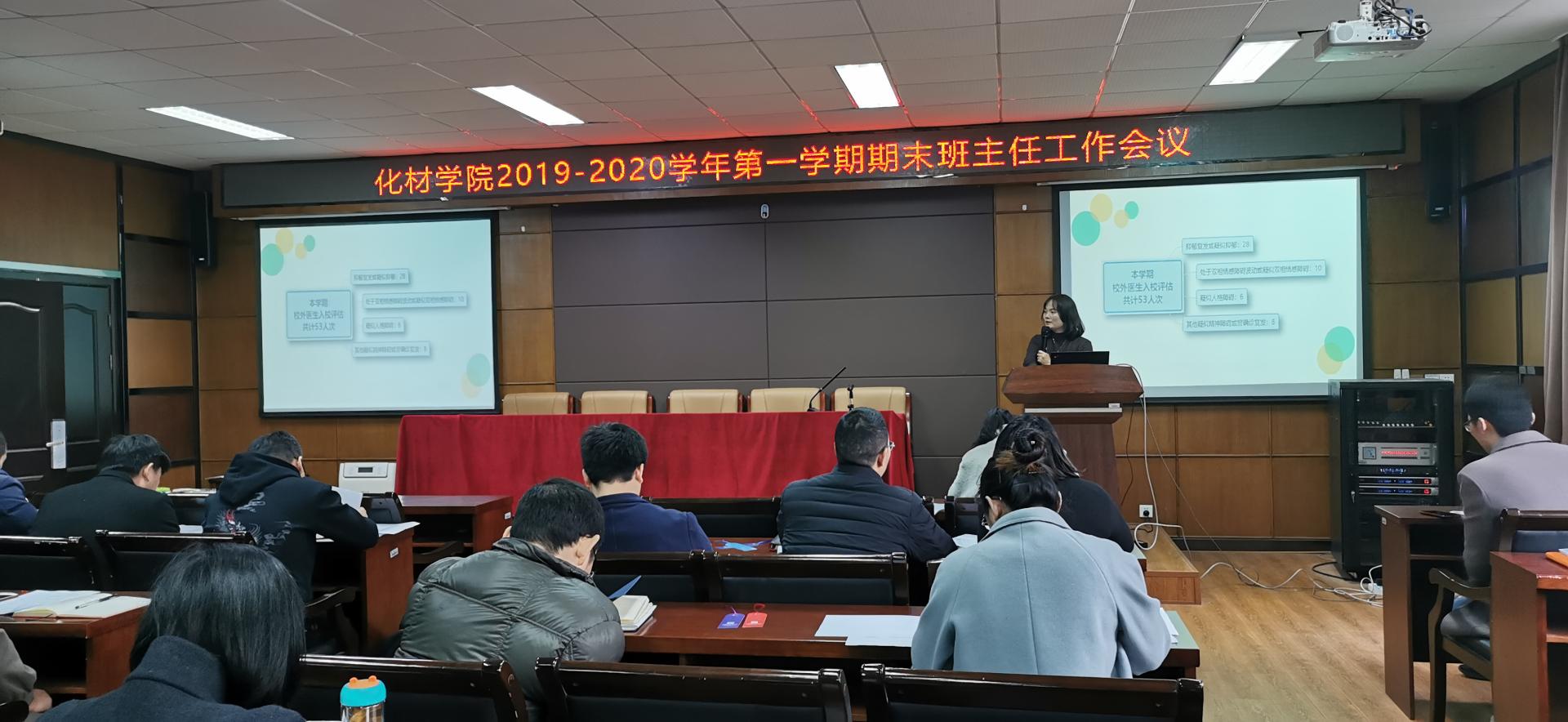 2020年1月3日下午两点,qy球友会官网在南校11B208会议室召开了2019-2020学年学期末班主任工作会议。参加本次会议的有公司党委书记熊琳、公司党委副书记周敬业,员工科辅导员孙玮玮、邹涌彬、武晓岚、薛涛、沈振以及全体班主任。会议由公司党委副书记周敬业主持。