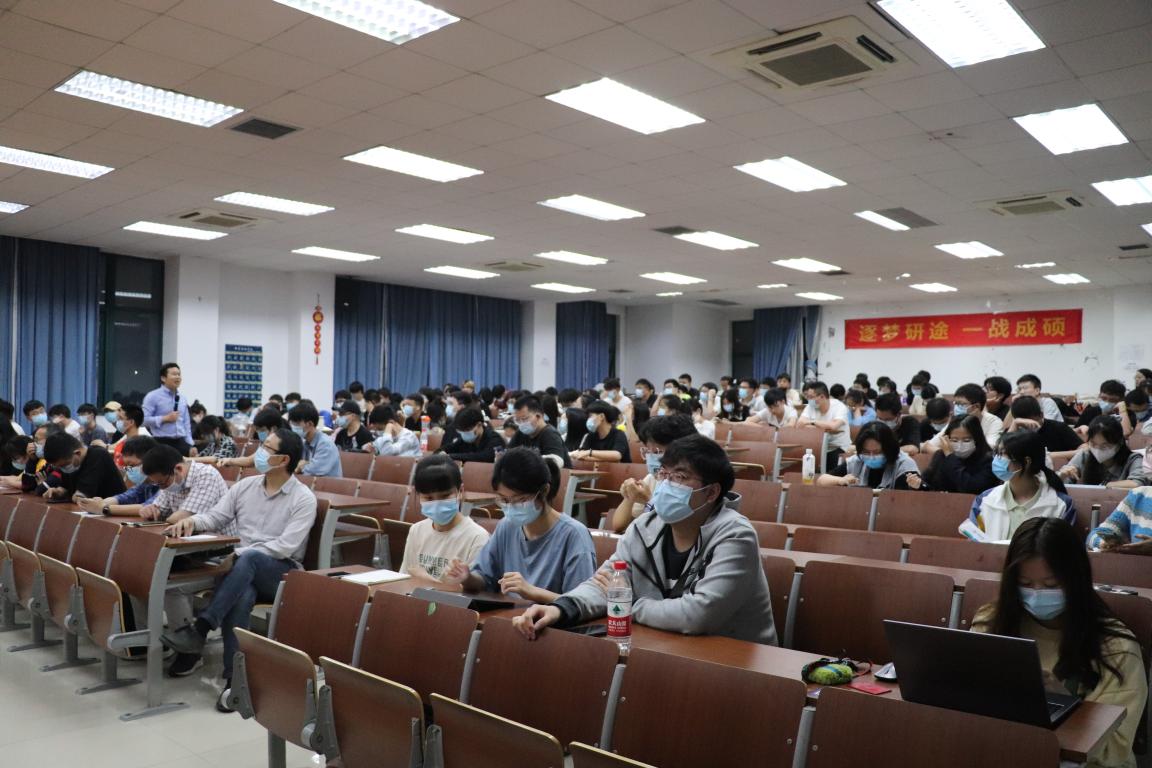 最后,化学系主任方国勇老师强调了心理素质对考研的重要影响,通过几个典型的案例告诉大家坚持的必要性,他还贴心地指出,在难以抉择时可以及时咨询老师。2019级辅导员邹涌彬老师则从自身经历出发,说明了考研深造的重要作用。“趁年轻,抓住考研的机会!”邹老师还从院校、疫情防控等方面展开讲解,对同学们提出了殷切的期盼。