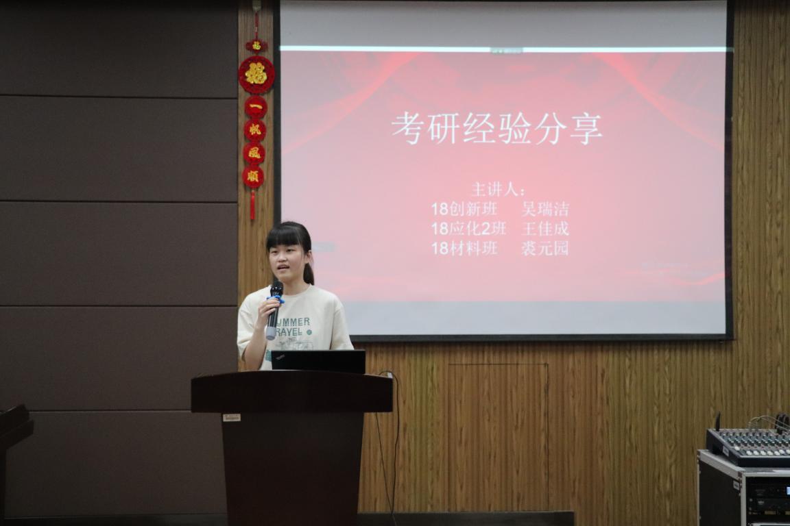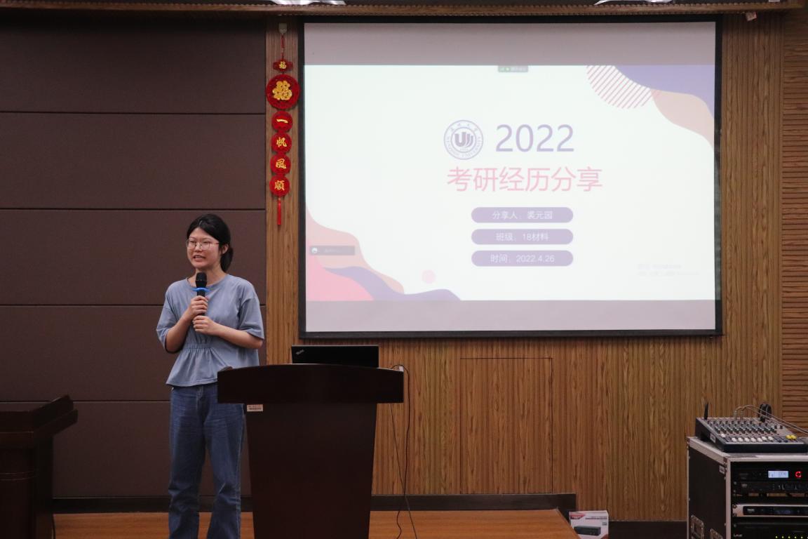 首先是以437高分考入本校的吴瑞洁同学,她主要从考研英语、政治公共课的准备方面展开讲解,强调了多练习的必要性,还指出要把时间更多的用在专业课上。