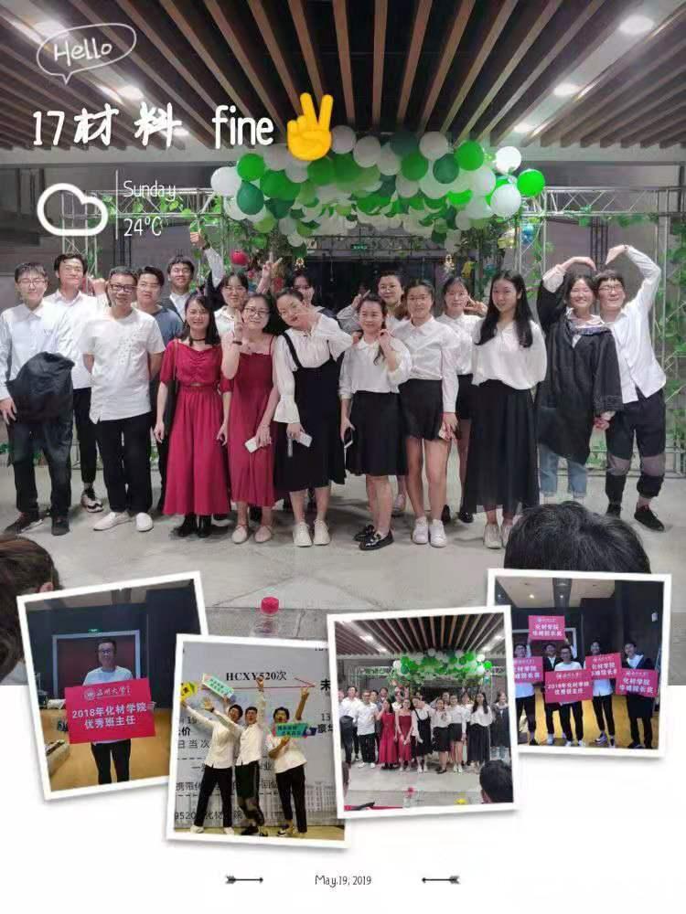 2017材料班一直是一个团结友爱、积极向上的大家庭,更有一位严肃不失幽默的班主任——刘若望,刘若望老师是材料学专业课老师,同学们亲切的称呼他为“旺旺”老师,他的班会永远不会超过半小时,但是从来不会漏讲一个重点,因为班主任在会前将重点进行罗列凝结,为的就是不耽误大家时间还能够传达班会重点,平时“旺旺”老师更像班级同学的大哥,和同学们一起玩耍,带领每一位同学为班团建设努力,班级有10名同学曾被评为校级、院级优秀员工干部、工作积极分子。班级同学也不断积极进取、不断挑战自我,英语四级通过率达85%,六级通过率接近40%,“旺旺”老师鼓励同学参加科研,班级很多同学从大一起就跟随导师进入实验室,进行科研训练,校级科研立项结题率达到100%,获得院级竞赛4项,校级竞赛5项,省级竞赛13项,发表专利近10余项,并成功在知名期刊上发表多篇文章。在考研期间,班级同学互相帮助、相互鼓励,营造良好的学习氛围。