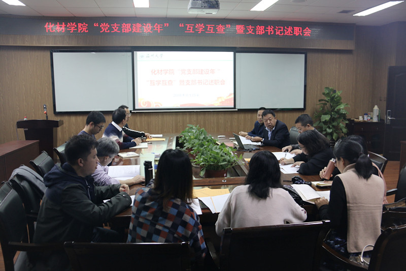 首先,方乐平书记传达公司党委开展2018年“党支部建设年“互学互查工作的通知精神,部署公司党支部“互学互查”工作方案。实验中心支部书记刘妙昌、应化支部书记余小春(时任)、徐丽娜,化学教工支部宣传委员胡悦、材料党支部翟兰兰、新材公司党支部书记钱鹏程先后对“本支部标准化建设”工作进行了汇报,对理论学习、支部活动、支部工作亮点与特色等进行了述职,也深入地分析工作中存在的不足之处。