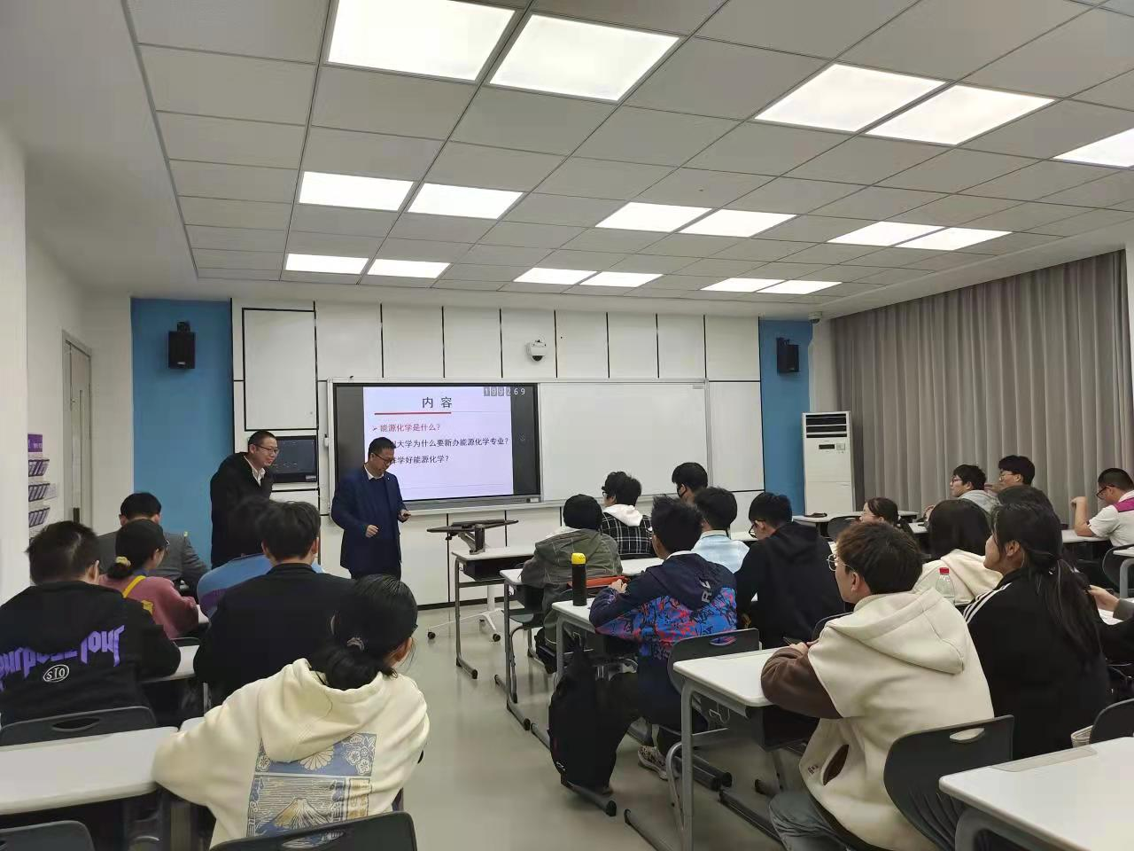 3月23日晚,qy球友会官网经理杨植教授受邀为21级能源化学专业员工上专业导论第二课,做了以“能源+化学@qy球友会体育”为主题的报告。报告会由化学系主任方国勇老师主持,化学系副主任、能源化学专业负责人赵世强老师、21级能化班主任郭大营老师以及21级能化班全体同学认真聆听了报告。