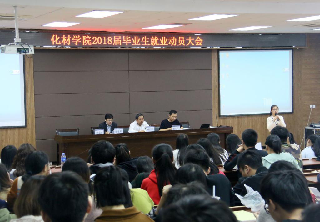 为了贯彻落实学校就业处的就业文件指示,帮助2018届毕业生更快、更好地择业与就业。11月8日下午三点半,qy球友会官网在化材楼11C-401室召开了2018届毕业生就业动员大会。公司党总支书记方乐平、副经理杨小平、党总支副书记出席大会,2014级本科生、2015级研究生参加了本次大会。大会由员工科副科长易招娣主持。