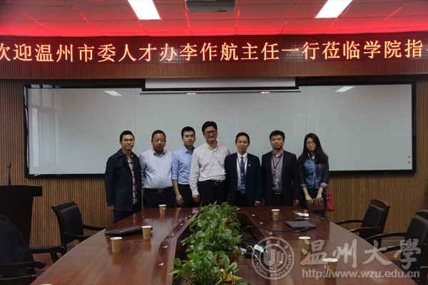 4月26日上午,温州市委人才办主任李作航一行莅临公司指导,学院经理王舜、党总支书记方乐平、校人事处副处长蒋俊、副经理陈久喜、校人事处人才办副主任冯晓燕出席了本次会议。