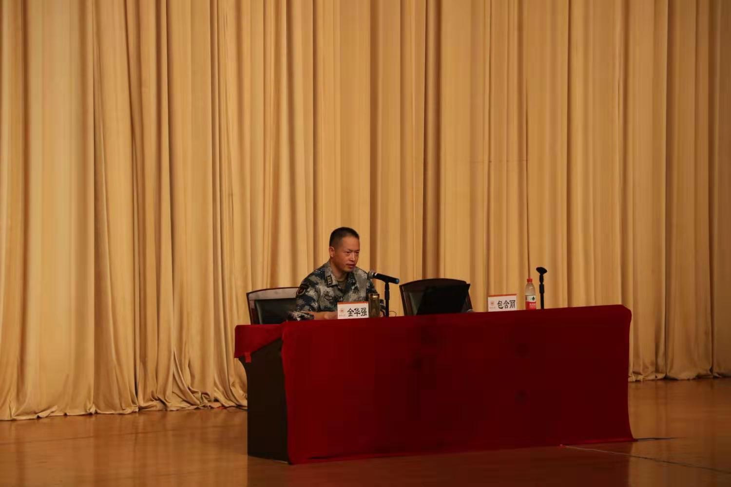 本次为公司新生作军事理论讲座的主讲人是温州市军分区政治部主任金华强。包含丽老师简单介绍了金华强主任的身份以及过往经历后讲座正式开始。金华强主任的讲话分为我国安全面临的现实问题、国防动员基本概念涵义和重要意义、国防动员系统调整改革情况以及关于国防动员工作的一切思考这四部分。首先,金华强主任通过对国际形势、地缘情况两方面的详细分析,指出了影响我国安全问题的源头和威胁我国安全问题的关键。并播放了介绍东风-41导弹的视频,说明我国在保护国家安全方面是有底气的。接着,金华强主任向同学们一一讲解了国防动员的基本概念、在维护国家安全稳定和发展中的功能以及它的主要内容和主要意义。随后,介绍了国防动员系统调整改革情况和关于国防动员工作的一些思考。最后,金华强主任表达了对同学们未来能为祖国富强做贡献的美好希冀。