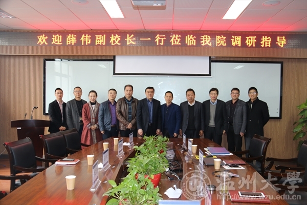3月29日上午,副董事长薛伟、党委委员、研究生部部长陈安金以及研究生部副部长董新姣、科技处副处长卢立珏等一行莅临公司开展学科、科研调研工作。经理王舜、党总支书记方乐平、副经理杨小平及相关教师代表参加了本次调研工作会议。 首先,王舜经理就学院团队建设、重点实验室建设、科研平台、团队队伍建设以及学院十三五战略规划向薛伟副董事长一行做了详细汇报。随后,学院与会人员分别就学位点评估、国际化建设、博士和博士后培养、地方服务等工作与研究生部、科技处相关人员进行了沟通和政策交流,并希望研究生部、科技处继续加大力度支持学院发展。 薛伟副董事长在认真听取汇报后,充分肯定了近年来学院在团队建设、科研项目和成果等方面的工作成绩与思路,对学院接下来的工作提出了希望:一是要协同创新,促进人才培养,用好“人才”资源,多方位整合,共创共赢共发展;二是要充分解读相关政策,做好平台建设的“抓手”工作;三是要做好院地合作的研究院管理工作。