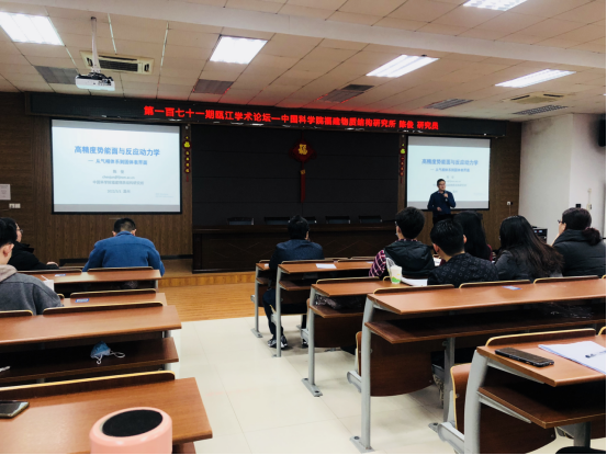 讲座中,陈俊研究员首先简单介绍了分子反应动力学的起源和化学动力学理论计算能在原子分子层面以及量子态层面研究化学反应过程。报告中陈俊研究员以几个气相基元反应体系,以及固体表界面上的吸附体系为例,阐述当前气相反应体系与表界面体系高精度化学反应势能面构造面临的挑战,以及新型电子结构方法为解决精度与效率的矛盾带来的机遇。