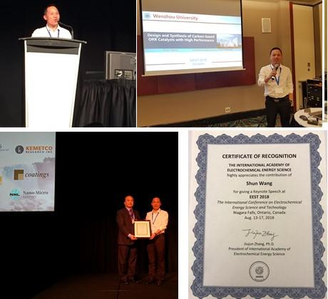 qy球友会体育王舜等6人受邀组团参加本次会议,团队负责人王舜教授担任EEST2018大会副主席,并作了题目为“Design and Synthesis of nanostructured carbon materials for high performance electrocatalysis”的主题报告(keynote speech),邹超博士、金辉乐博士、陈锡安博士及张青程博士也分别就自身在太阳能电池、燃料电池、超级电容器等领域所取得最新研究结果在分会场上作邀请报告(invited speech)。陈光博士作微生物燃料电池方面的海报展示。(邹超博士报告题目“Alkylthiol-Free Synthesis of CuInSe2 Quantum Dots for Sensitized Solar Cells”;金辉乐博士报告题目“Biomass-Derived Heteroatom Doped Hierarchical Porous Carbon Materials for Fast Charging/Discharging and Long Life Supercapacitors”;陈锡安博士报告题目“Molybdenum Carbide Nanoparticles Coated into The Graphene Wrapping N-Doped Porous Carbon Microspheres for Highly Efficient”;张青程博士报告题目“Facile and Massive Synthesis of Nickle-Cobalt Oxide/RGO for High Performance Asymmetric Supercapacitors with A Micro-Impinging Stream Reactor”;陈光博士海报展示题目“Anti-Fouling and Cost-efficient Air Cathodes for Microbial Fuel Cells”)qy球友会体育在能源材料和光电催化等领域的最新研究成果,吸引了与会业内著名专家和学者的极大兴趣与互动交流,这标志着qy球友会体育的研究工作引起国际能源、材料界的广泛关注。