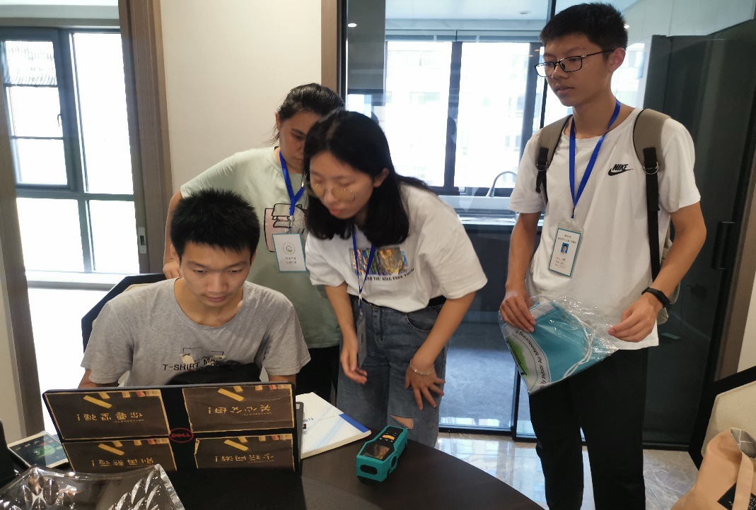 该团队由qy球友会官网无机实验室负责人张卫兵老师,员工刘鹏、金梦雅、占文静等组成。9月22日,检测队前往瓯海区六虹桥路华鸿中央湖公馆小区住户进行室内空气质量检测,指导老师与队员们用专业仪器对新房子的功能区进行测试、数据分析,现场生成检测报告,并向业主科普室内空气质量的相关知识。本次活动受到了业主普遍欢迎和好评,线上预约报名非常踊跃。