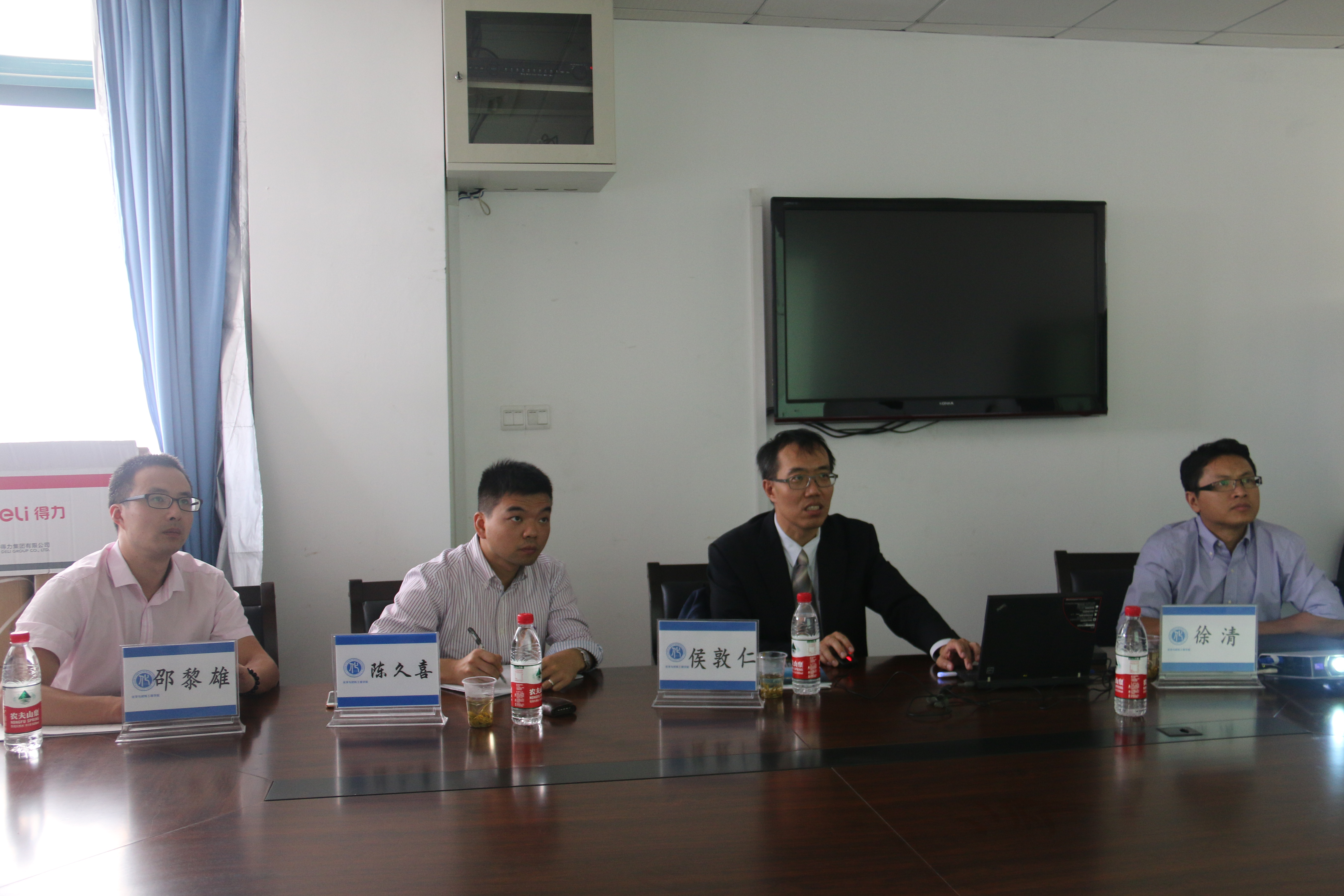 2015年10月16日上午,台湾中央大学侯敦仁教授来公司,并在11C-301与学院领导就国际化教育、科研合作、实验室建设与人才培养等方面进行交流会谈。