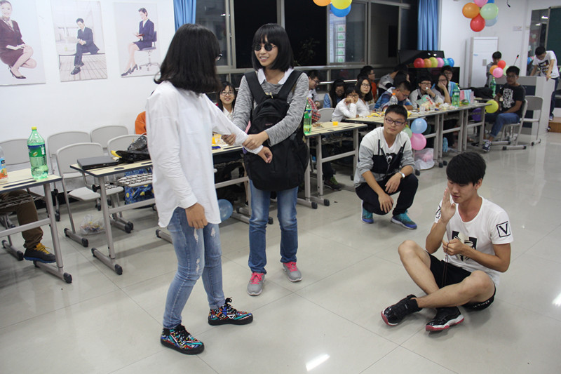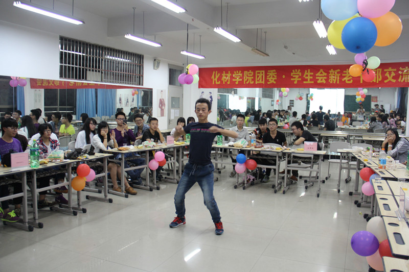 来自员工事务管理中心的武京杰代表员工会新干事进行发言,希望新干事以积极团结的热情去投入以后的工作,同时感谢老干事与主任的付出与教导。交流会上,节目可谓精彩纷呈,歌曲,舞蹈,小品,应有尽有,员工事务管理中心、学业指导服务中心、创新实践活动中心、科技竞赛服务中心、新闻宣传中心等各个部门都派出了代表表演节目。男女反串以及新干事们精湛的演技,是此次交流会的一大亮点。最振奋人心的就是“猜炸弹”,“泡泡糖”,“请相信我”,“刮大风”,“官兵捉贼”等一系列游戏环节,各个中心都积极参与,展现自己的智慧与力量。