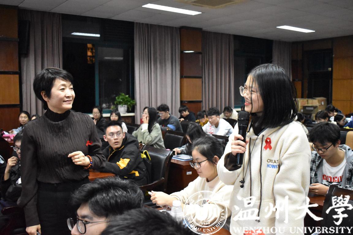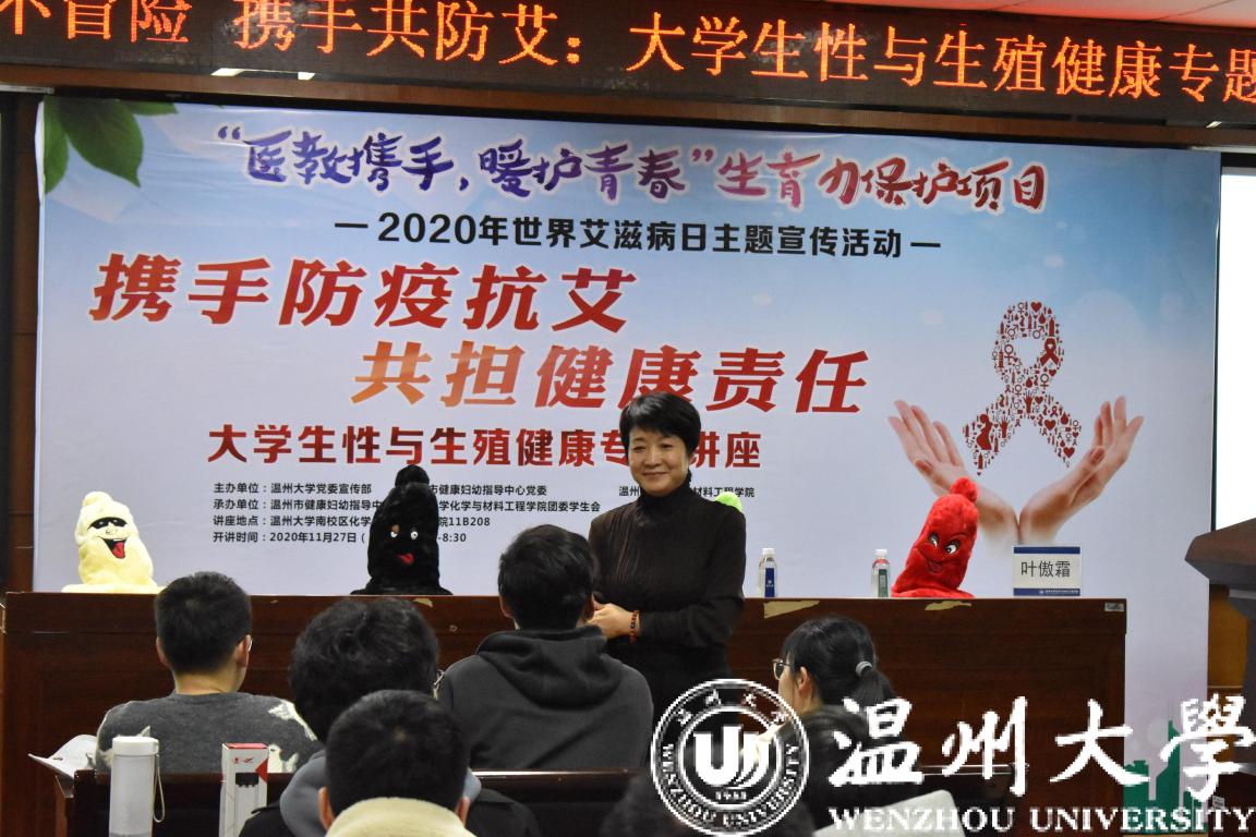 晚上六点半,“为爱坚持,拒绝冒险”主题讲座在公司南校区qy球友会官网11B-208会议室成功举办,讲座邀请了温州市健康妇幼指导中心保健科科长、副主任医师叶傲霜作为主讲嘉宾。叶傲霜老师以通俗的语言,生动真实的事例,教授了同学们许多有关性与艾滋病的实用知识,提醒同学们一定要在日常生活中注重个人健康的保护,重视血液传播潜在途径的人为阻断,养成文明健康的生活习惯,避免易感染艾滋病危险行为的发生,提升健康素养。