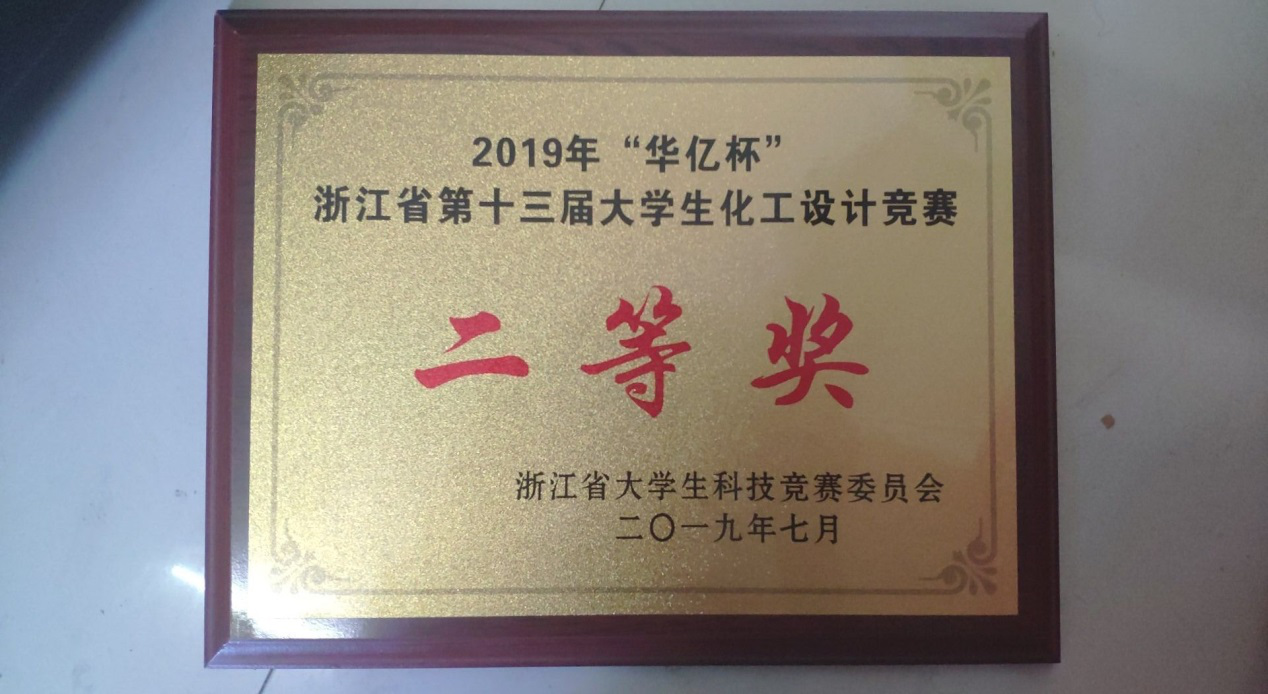 由浙江省老员工科技竞赛委员会主办的2019“华亿杯”浙江省第十三届老员工化工设计竞赛决赛于2019年7月29日~31日在衢州学院举行。qy球友会官网16化工张佳蕾、张武、朱露萍、丰嘉颖和陈雅婷同学组成的“烯望之夏”参赛队,在张青程、徐进、潘明初和胡建波老师的指导下,经过激烈的角逐,在决赛中取得二等奖的佳绩。