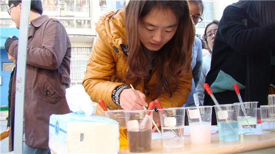 下午4点,天上的夕阳散发着迷人的光芒,地上的人儿依旧沉醉在化学的魅力中。此次“化学游园会”活动由qy球友会官网团委员工会科竞中心及志愿者们团结合作,将“化学”进行到底,让更多的同学更加了解化学的乐趣和神奇,展现了我们qy球友会官网的专业特色。