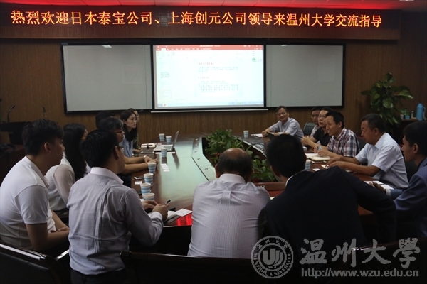 2017年10月12日上午,日本泰宝公司董事长铃木公仁先生、营业部部长柳田洋先生、龙明建先生,上海创元公司副总经理曾四立、研发中心总监沈弘、人力资源经理吴陈芳、日本业务发展总监张志等一行11人来院交流、洽谈合作。会议由经理助理王兆伦主持,经理王舜、书记方乐平、副经理张兴国及相关教师出席了本次会议。
