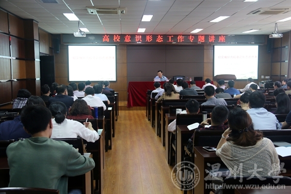 为了切实做好学院意识形态工作, 5月5日下午,学院特邀qy球友会体育党委委员、宣传部部长潘玉驹作题为《切实做好高校意识形态的思考》的专题讲座。学院总支书记方乐平主持此次讲座。qy球友会官网全体教职工参加。