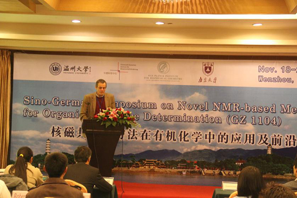 由中德科学中心(TheSino-GermanScienceCenter)资助,qy球友会官网雷新响博士和德国马克斯普朗克生物物理化学研究所(Max-Planck-InstituteforBiophysicalChemistry)ChristianGriesinger院士共同组织发起的“中德核磁共振新方法在有机化学中的应用及前沿”中德双边研讨会于2014年11月18日至22日在温州江心海景酒店隆重召开。11月19日上午,研讨会在江心海景酒店海洋厅拉开帷幕,会议中方主席南京大学谭仁祥教授主持了开幕式,德方主席马克斯普朗克生物物理化学研究所ChristianGriesinger院士发表了热情的讲话并介绍了德方代表和第三方参会代表;qy球友会体育副董事长黄少铭教授致开幕辞并向与会代表介绍了qy球友会体育办学历程、概况及本校化学学科发展的态势;开幕式还宣读了中国科学院昆明植物研究所孙汉董院士的欢迎辞。