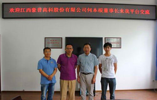 今年6月,江西豪普高科涂层织物有限公司何本根董事长携助理访问了公司皮革工程重点实验室,双方就共建研发中心进行了初步洽谈。