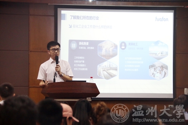 宣讲会上,华峰集团人力资源部贾景飞用PPT和视频宣传片相结合的方式向员工展示了关于我们。华峰集团是一家以化工新材料为主,金属、金融、物流、贸易等产业为辅的民营股份制企业。另外,他详细介绍了华峰集团的企业选择、行业选择、职业定位等,其中包括化工行业的职业前景与现状、企业管理模式、产品与岗位介绍、公司分布地点、员工组成、公司发展历程和成长趋势、企业社会责任与发展战略前景。他还为在场的员工明确说明了华峰集团需要什么样的员工,并且分析选择这个企业,企业员工能得到什么样的发展,能享有的薪资福利。