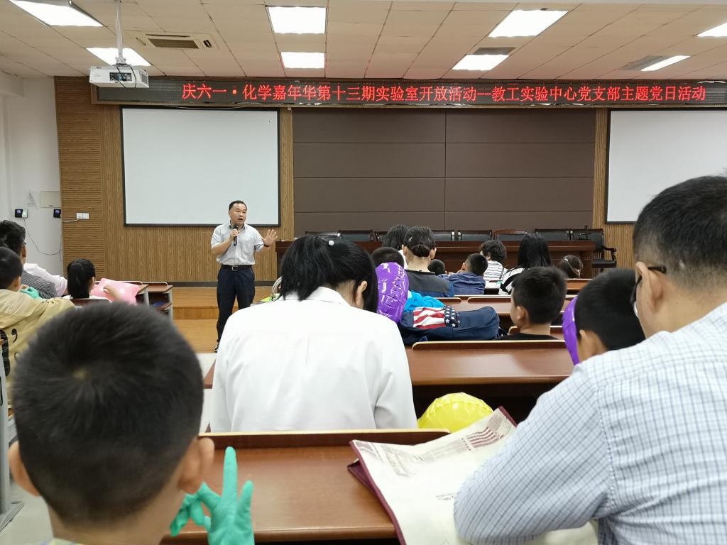 2019年6月1日,qy球友会体育校工会联合qy球友会官网共同举办了qy球友会官网教工实验中心党支部第十四期实验室开放日活动,邀请学校教职工子女进入实验室体验生活中的化学,为小朋友们送上”六一”儿童节礼物。当天上午,校工会主席张希均老师、公司党委书记方乐平老师、化材学院党委副书记潘从义老师、学院工会主席陈锡安老师、实验中心教工党支部书记刘妙昌老师及其支部党员教师与老员工志愿者来到现场。