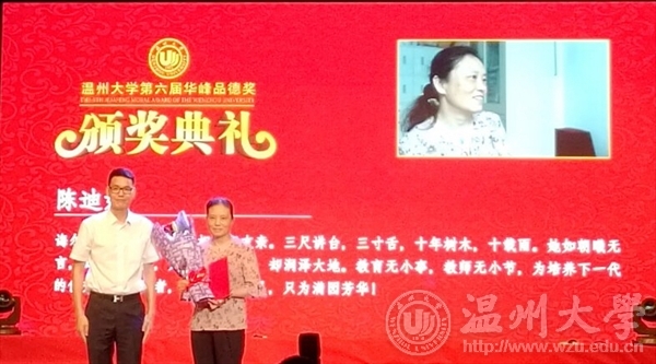 2017年9月28日晚,第六届qy球友会体育“华峰品德奖”在育英大礼堂举行颁奖典礼。校领导林娟娟、牟德刚、蔡曙光、潘玉驹、郑信军以及学院各单位负责人、师生代表、媒体记者等出席颁奖典礼。公司陈迪妹老师荣获本届“华峰品德奖”。