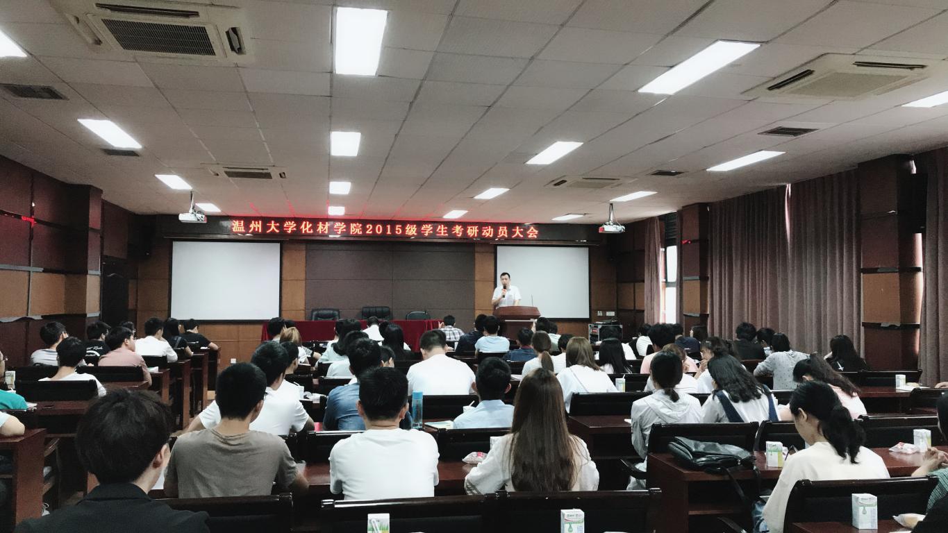 5月28日中午12点10分,qy球友会官网召开了2015级员工考研动员大会,出席本次会议的人员有学院经理王舜老师、党委书记方乐平老师、党委副书记潘从义老师、退休教师张力学老师、15化本班主任肖洪平老师、15材料班主任尹德武老师、学院副科长易招娣、辅导员邹涌彬老师,以及三位员工经理和全体15级考研员工,会议由潘从义副书记主持。