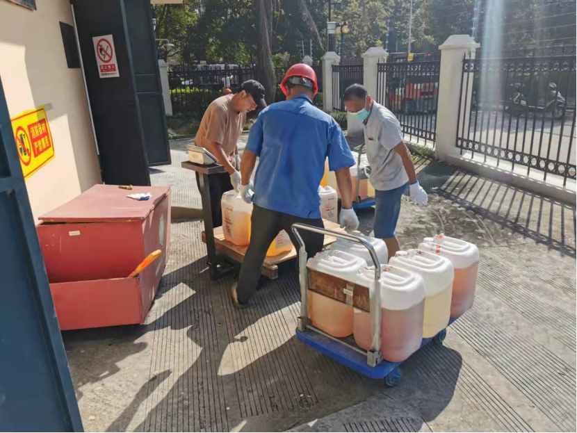 本次清运工作有效解决了公司和生环学院积累的实验室废弃物,为学院安全环保排除了重大隐患,为国庆假期间实验室安全和管理奠定了良好的基础。