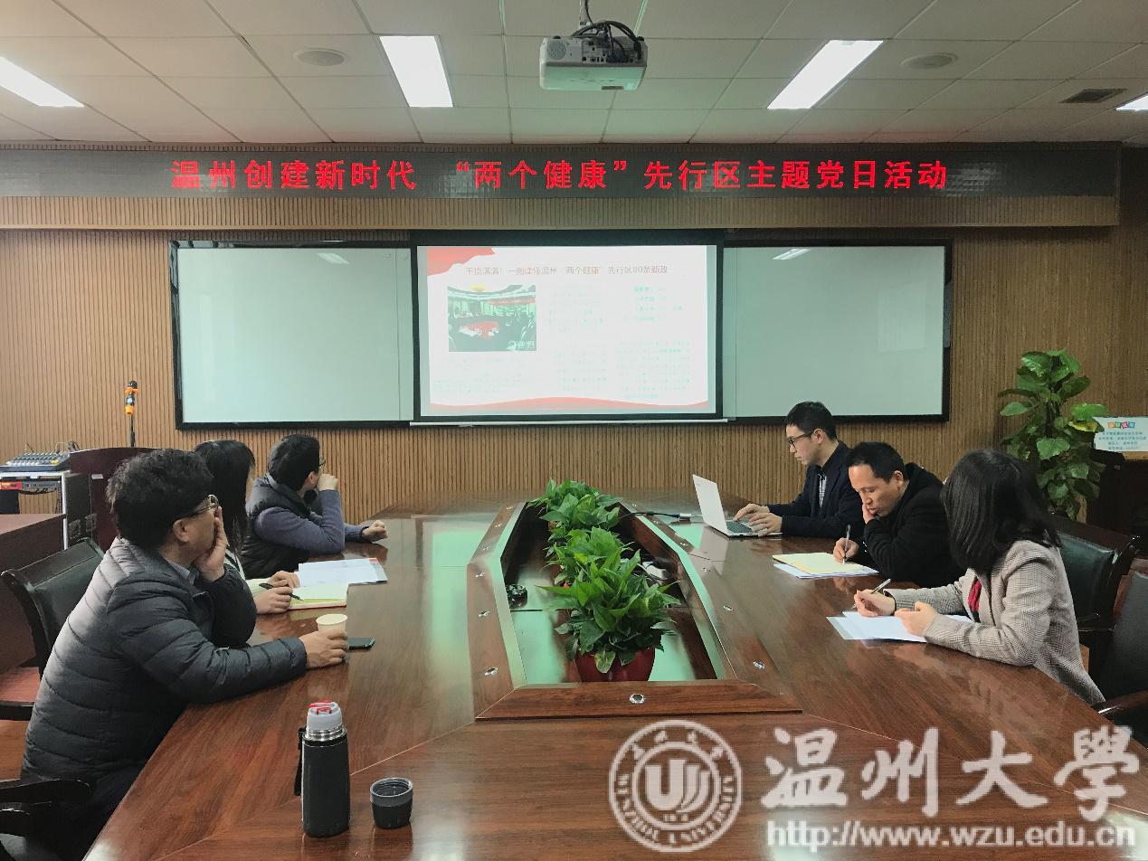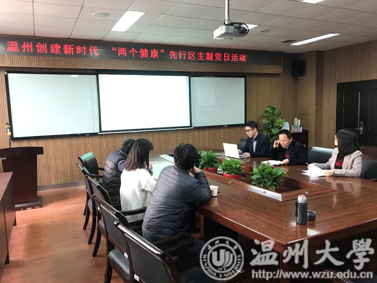 2019年3月26日,新材料与产业技术研究公司党支部开展以“温州创建新时代 ‘两个健康’先行区”为主题的支部主题党日活动,“温州市创建新时代‘两个健康’发展先行区”对于促进民营经济健康发展和民营经济人士健康成长,具有十分重要的意义。