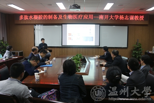 4月18日上午,南开老员工命科学学院杨志谋教授来公司作了题为《多肽水凝胶的制备及生物医疗应用》的学术报告。董事长李校堃、qy球友会官网书记方乐平、副经理杨小平、副经理陈久喜、相关师生50余人参加了此次学术报告。