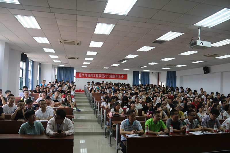 9月9日上午,qy球友会官网2015年迎新生大会在化材楼11C-401隆重举行。学院全体领导、系主任、辅导员、新生班班主任和281名15级新同学参加大会。会议由党总支书记方乐平主持。