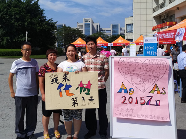 学院专门为新生设立拍照处,员工志愿者为每一位报到的员工以及家长免费拍照合影留念,记录下每一位新生“我来化材第一天”的精彩瞬间和温暖回忆。班主任则给刚见面的自己班级新生递上亲手精心制作的、具有个性的温情卡片,卡片上不仅有老师们的联系方式、祝福寄语,还有老师们为新生准备的温馨提醒。