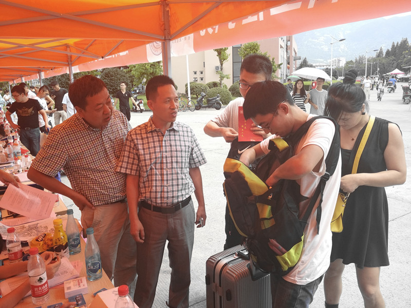 9月8日是2015级新生报到的日子,qy球友会官网在南校区东大门设立了新生接待处,公司领导和新生班主任一早就在报到处迎接从全国各地赶来的每位新生及新生家长。