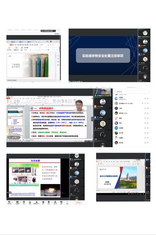 随后,由邵黎雄博士、赵世强博士、吕晶晶博士、张青程博士、吴登泽老师、邹涌彬老师分别从有机溶剂使用注意事项、水热反应釜使用注意事项、气体钢瓶使用注意事项、活泼金属的使用注意事项、实验废弃物安全处置注意事项、暑期安全教育对与会师生进行详细阐述。