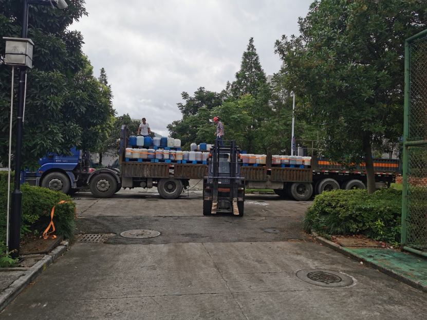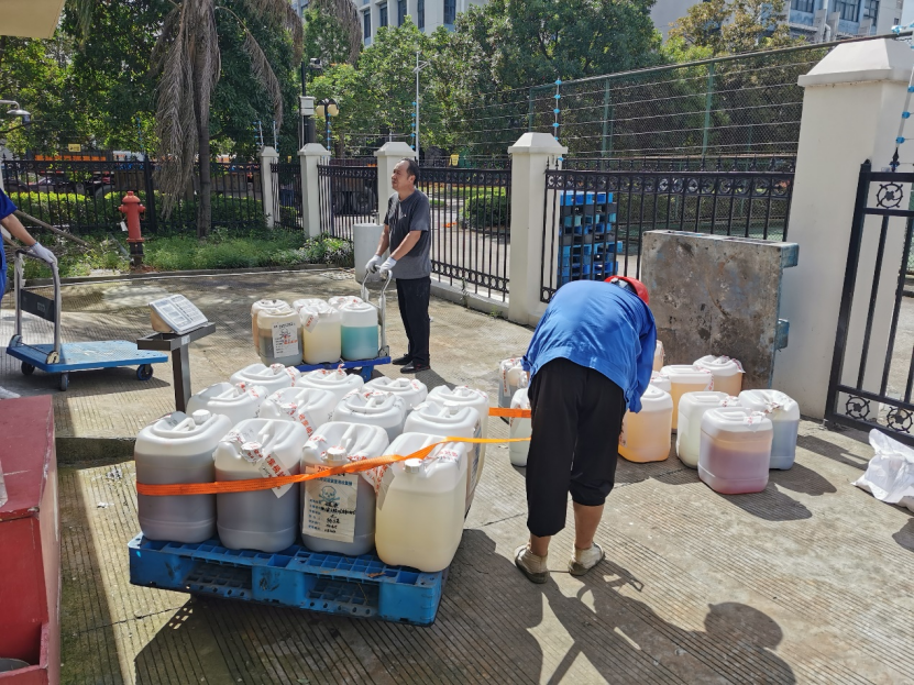 2021年7月6日,在国资与实验室管理处支持下,公司实验中心组织了假期前的实验室危险废弃物的清运工作。