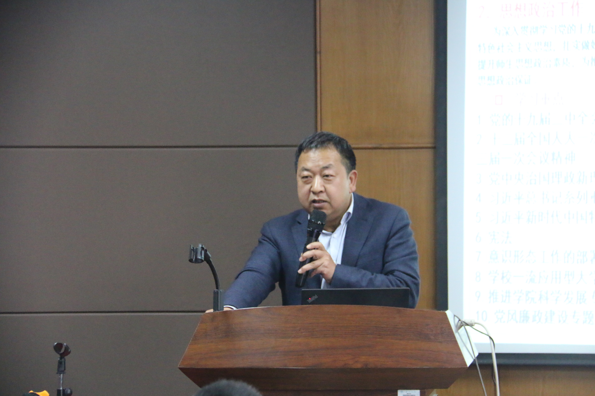 党委副书记潘从义对学院的员工工作、就业工作、班主任工作、学风建设工作、团学工作、研究生工作和招生宣传工作七大方面进行汇报。他强调,新学期将继续加强员工思政工作,将按照学校要求,保证各项政策落实到位,同时进一步营造学院良好的环境氛围,提升学院的知名度。