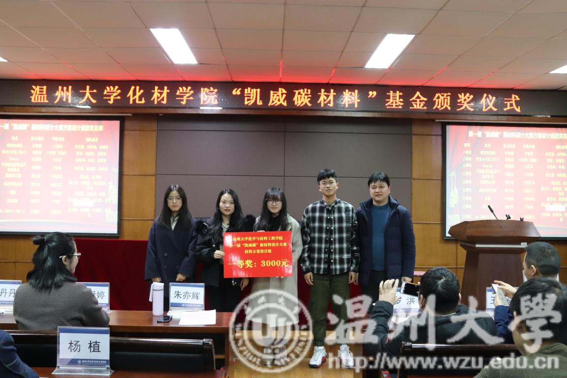 据悉,本年度“凯威碳”基金颁奖仪式材料知识组、方案设计组各有九个团队获奖,“凯威碳励志奖”共评选出20名同学获奖。希望公司学子在“凯威碳”基金的激励下不忘初心,砥砺前行,共同为公司材料科学与工程专业发展做出贡献。