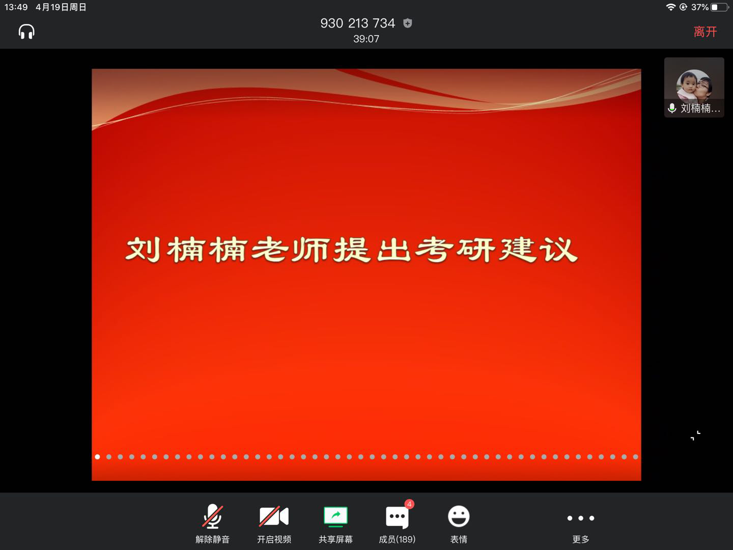 4月19日下午1点,公司于以线上会议的形式召开了qy球友会官网2017级年级会暨考研动员大会,周敬业副书记、方国勇老师、刘楠楠老师、15级杜洁丽学姐、17级班主任老师以及2017级全体员工参与会议。