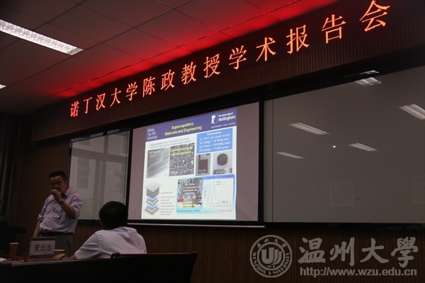 随后,陈政教授为qy球友会官网师生作了题为“电化学储能创新”的学术报告。他首先简要介绍了自己的科研团队,并对团队在超级电容器(supercapacitor)和超级电容池(supercapattery)的基础和应用研究方面取得的国际领先创新成果及市场的前景作了详尽的阐述,为公司师生的科研发展提供了新的思路和高度。在交流互动环节,学院师生就本次报告的内容和感兴趣的问题与陈政教授进行积极的交流互动,收益良多。陈政教授的详细回答,赢得现场阵阵掌声。