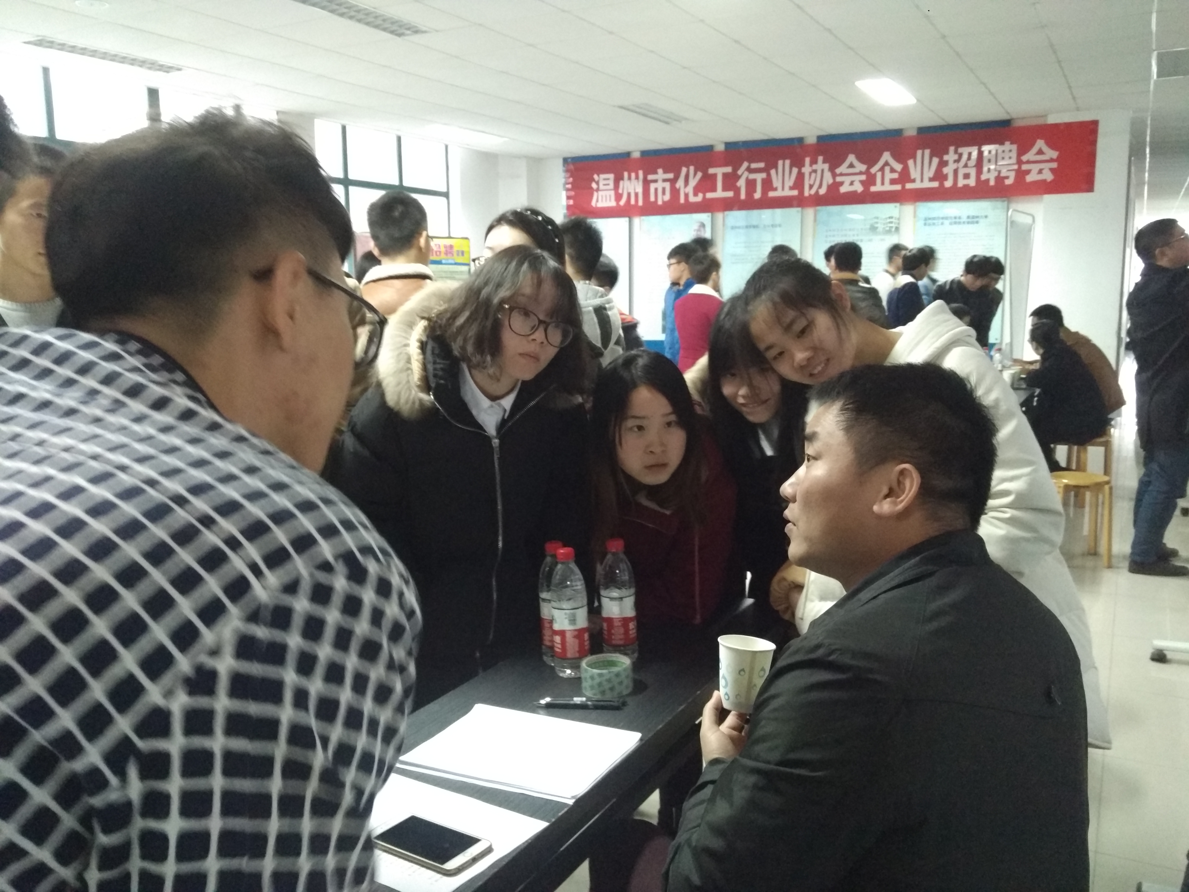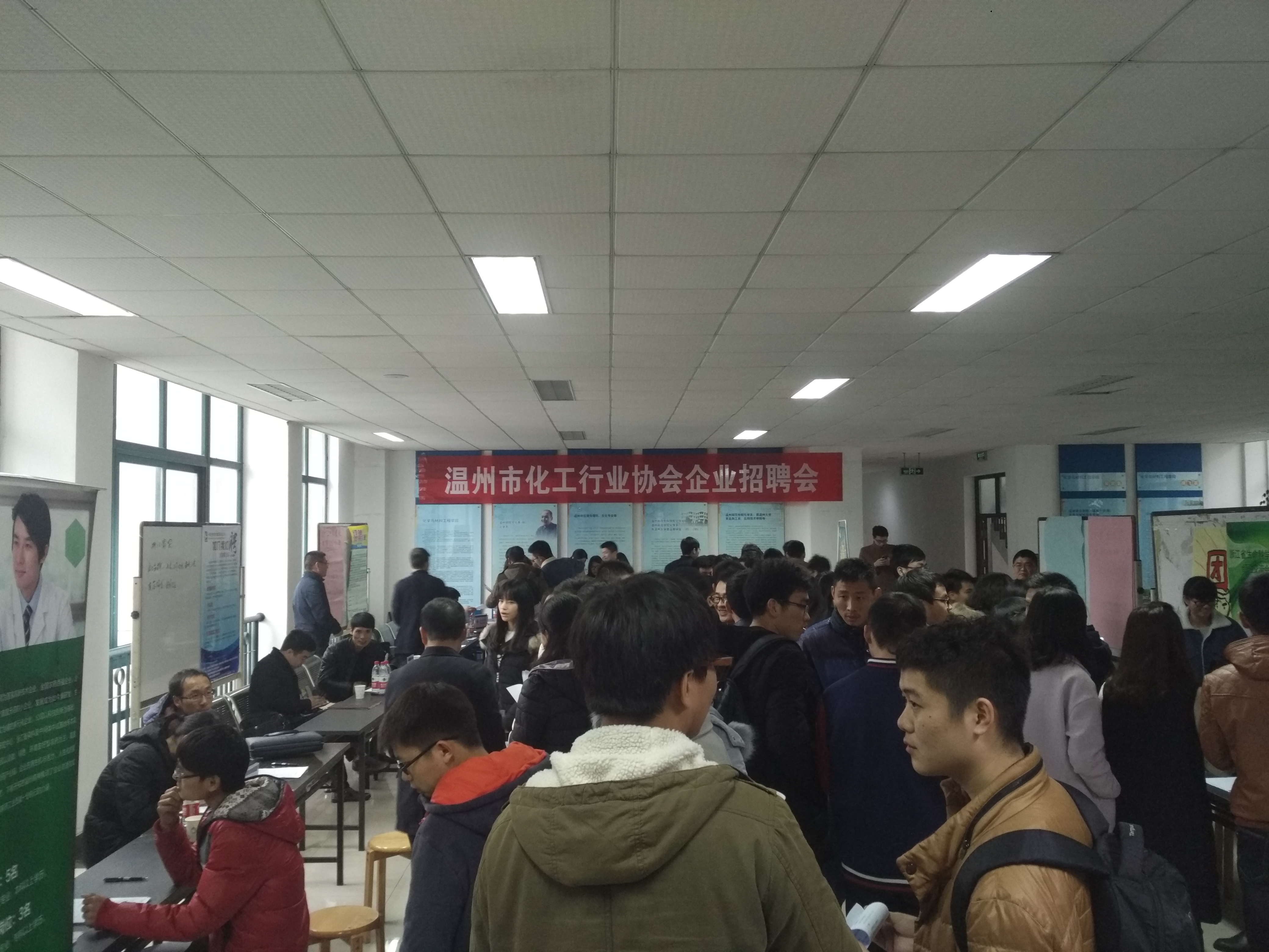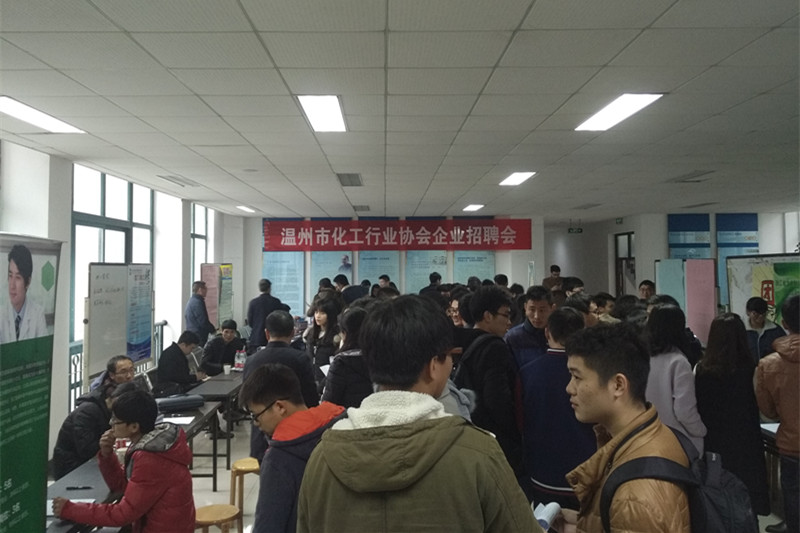 下午13点30分,在化材楼B栋二楼大厅,由温州市化工行业协会主办的企业招聘会正式开始。在场招聘的有十一家公司,包括华峰集团有限公司、浙江禾本科技有限公司、一帆生物科技集团有限公司等各化工专业公司。前来应聘的大多数为12级员工,13级的员工也有部分,他们前来,一方面是为了寻求实习岗位,积攒工作经验,另一方面是为了更加了解自己专业的相关就业行情。应聘者的简历内容清晰,能很好的凸显自己的个性和能力。招聘会现场气氛融洽。本次招聘会主要以招工程师、销售代表、检验员和技术员为主。学院方面也是十分注重这次招聘会,学院经理王舜、副经理陈久喜、副书记潘从义也到场与企业及员工进行交流。招聘会大约持续了两个小时,最后顺利落下了帷幕。