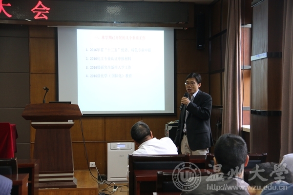 经理杨小平就本学期已开展的工作进行了说明,并针对教学工作、国际化教育、研究生招生工作及教务处工作抽查情况四方面指出了现阶段的工作要点。副经理陈久喜对本学期学院科学、员工学科竞赛取得的成绩进行了总结,就《2016年校级教改项目申报的通知》进行说明,对公司承办第九届浙江省老员工化学竞赛的工作进行了部署,并鼓励教职工积极开展科技创新活动。党总支副书记潘从义对学院“百名教授访百家”进行了总结,并对学院就业工作、员工团学工作、宣传工作开展重点进行了说明。