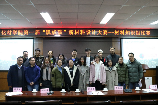 2018年12月12日,浙江凯威碳材料有限公司冠名赞助的qy球友会官网第一届“凯威碳”新材料设计大赛材料知识组比赛在化材楼11B208会议室举办。材料系主任杨植老师,材料系副主任杨昕宇老师和尹德武老师,以及材料系樊宏斌老师、刘若望老师,作为评委出席本次比赛。材料系主任杨植老师为比赛致辞。
