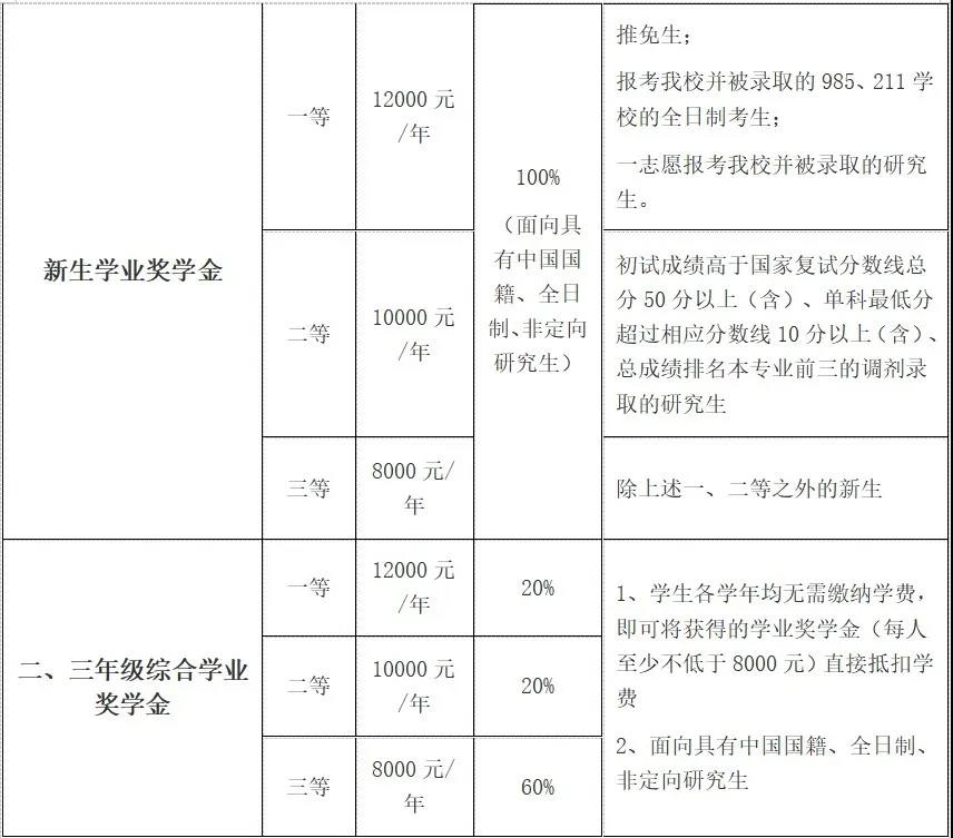 新入学的全日制非定向硕士研究生,文科类研究生每年可获得奖助学金不少于16500元,理工科研究生每年不少于18000元。每年获得奖助学金最高的可超过46000元。