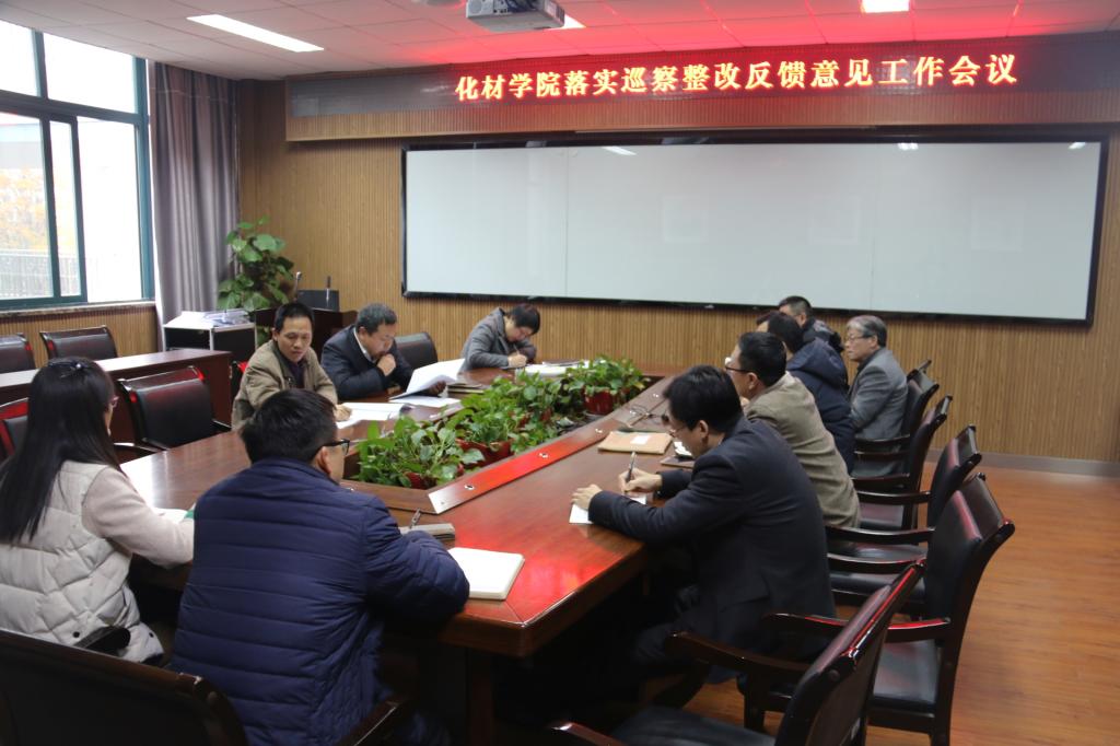 12月27日下午4时,在qy球友会体育党委巡察组向化材公司党总支反馈巡察工作情况会议之后,qy球友会官网立即召开巡察整改反馈意见工作布置会议,就巡察整改意见进行布置。会议由党总支书记方乐平主持,学院领导班子成员、各系主任及总支委员参加了会议。