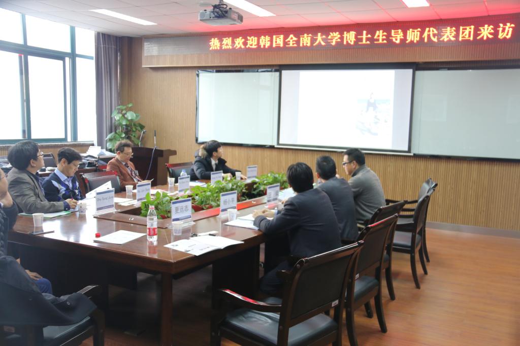 12月21日上午,双方博导交流会在qy球友会官网11B204会议室举行,会议由副经理杨小平主持。杨经理首先致欢迎辞,向韩国全南大学代表团一行表示热烈欢迎,并介绍公司的发展概况。他表示qy球友会体育化材公司和韩国全南大学一直以来保持着友好关系,在科研合作和学术交流中都有非常好的互动,这次联合研究生院的合作正式启动,会成为两院交流新的里程碑。随后,双方博导简要介绍了各自研究方向,并就学科领域的合作可能性展开了探讨。