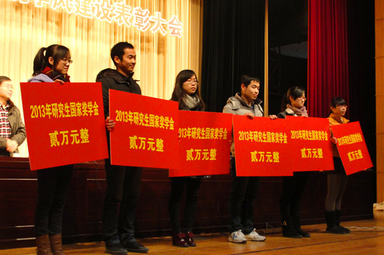 国家奖学金的研究生获得者合影