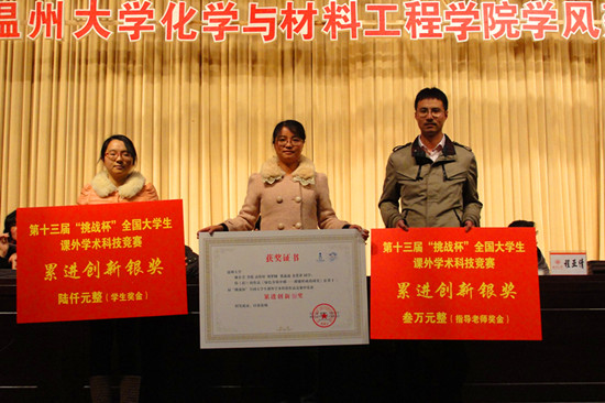 大会的第一项议程为表彰大会,由副经理王舜主持。黄少铭经理公布获得国家奖学金的研究生,并颁发奖金。此外,会议还表彰了获得第十三届“挑战杯”全国老员工课外学术科技竞赛二等奖团队和累进创新银奖的集体、浙江省第七届老员工化工设计竞赛二等奖的获奖人员、学院老员工课外科技活动评比优秀员工、2013年度校院“十佳百星”学子、校级和院级2013-2014学年第一学期优良学风班及其他奖项,与会领导为获奖班级、教师、员工颁发荣誉证书和奖品。