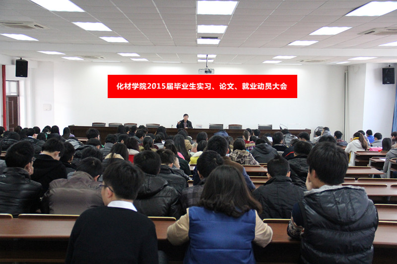 2014年12月29日上午10:00,qy球友会官网在11C401召开2015届本科毕业生毕业实习、毕业论文暨就业动员大会。出席本次会议的有学院院副经理叶明德、教学科长孙安娜、员工科长王壮以及2015届全体本科毕业生。