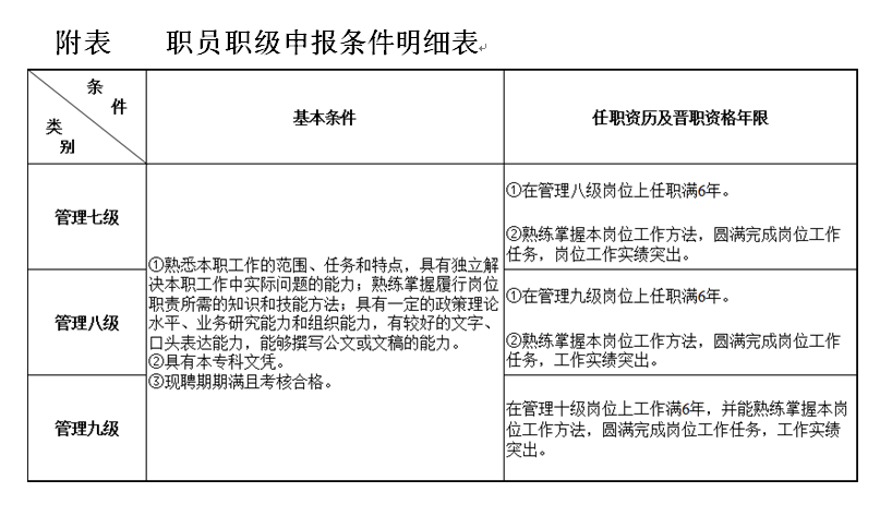 5.各级岗位竞聘基本条件、任职资历及晋职年限如下: