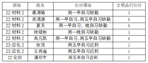 2、根据《qy球友会官网大一、大二早晚自习管理规定(201809修订)》,1次早、晚自习缺勤扣3分,学业发展部将在每周在“qy球友会官网”微信公众号平台公布本周考勤结果,如对公布的考勤结果有异议请当周周五下午4:30前到员工科办公室11B223说明情况,过时无效。22级、23级联系邹培杰老师。